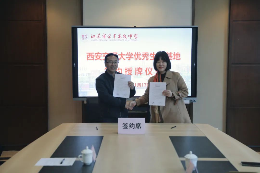 ▲西安交通大学、江苏省梁丰高级中学优秀生源基地建设合作签订协议