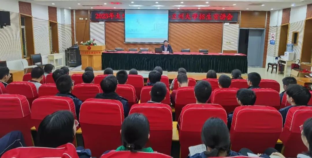 兰州大学经济学院副院长、教授潘永昕在报告厅对部分高三学生开展了宣讲活动。活动中,学生与兰州大学老师们积极互动,就兰州大学特色专业、就业前景等问题进行了深入的探讨。