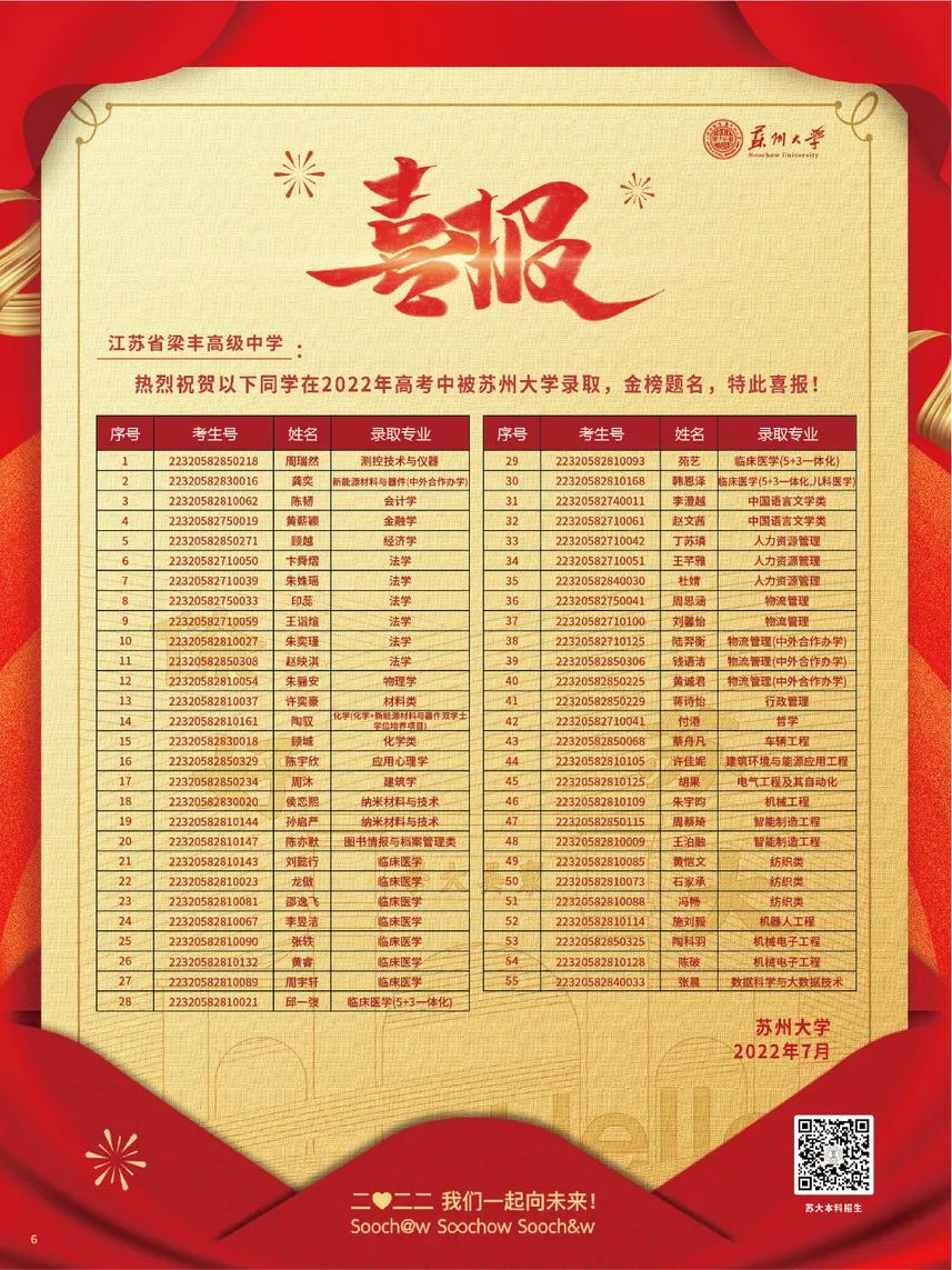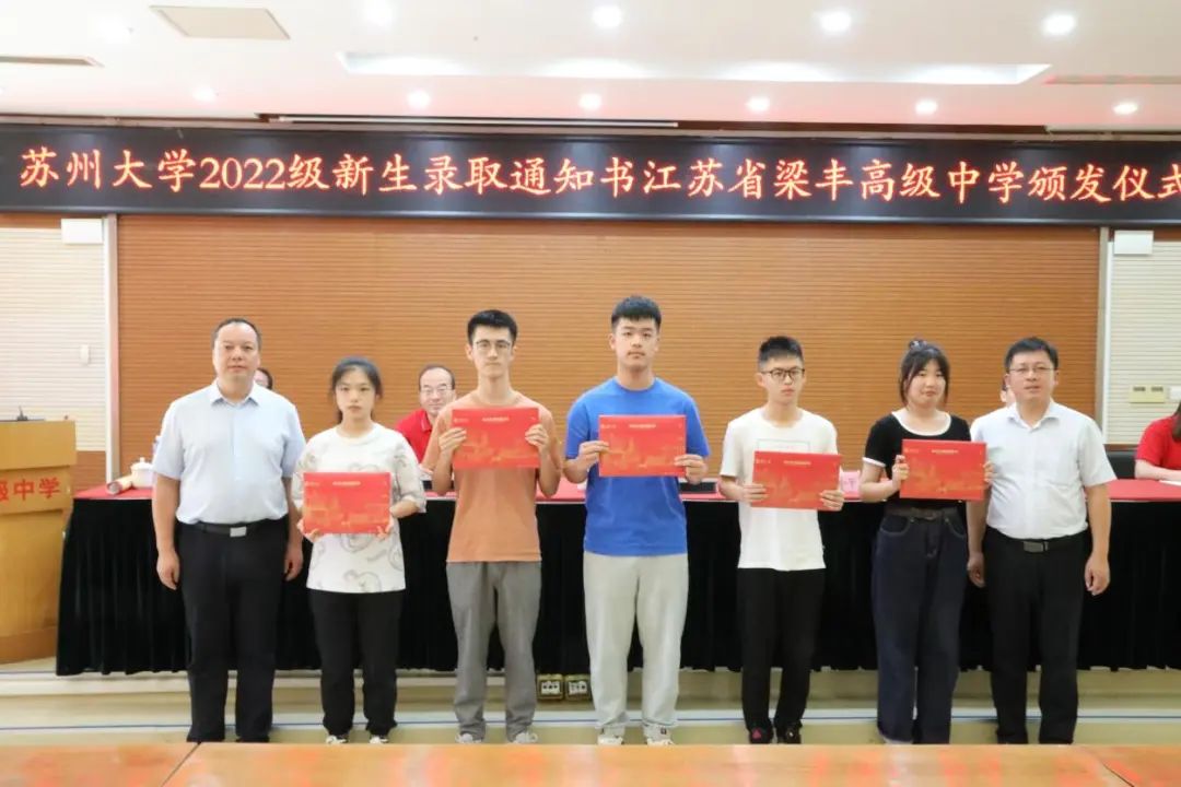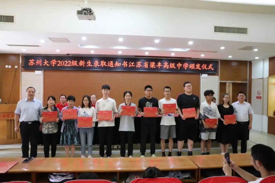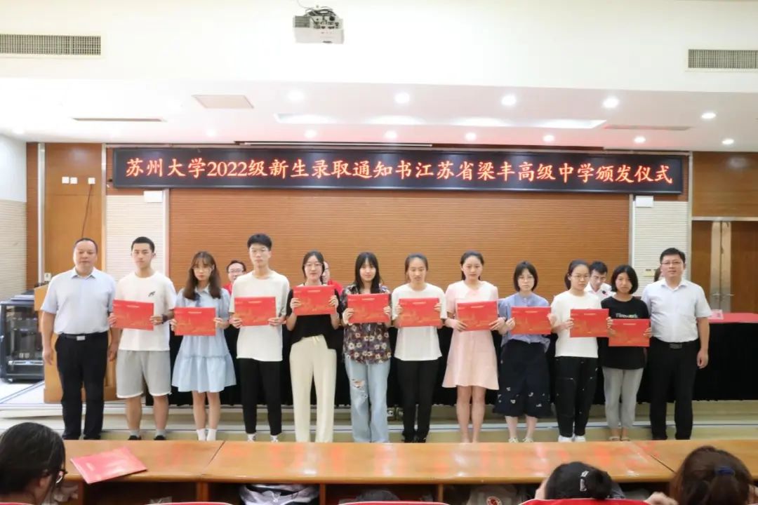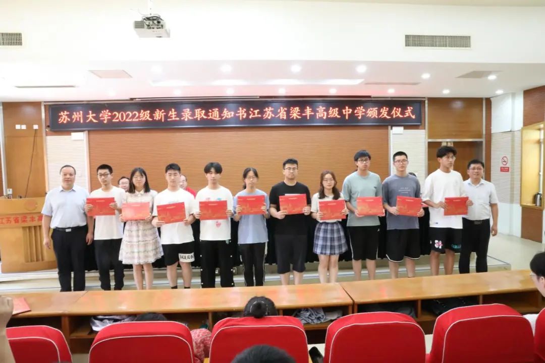 苏州大学来梁丰高中为2022级55位苏大新生颁发录取通知书