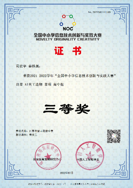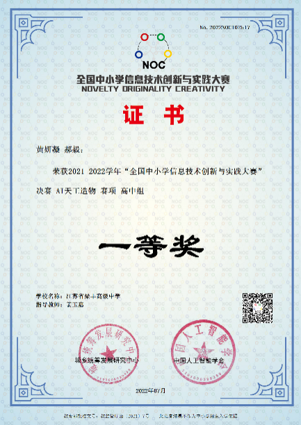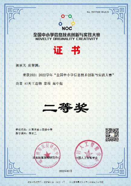 2022全国中小学信息技术创新与实践大赛(简称NOC大赛)于7月落下帷幕,梁丰高中学子参与人工智能赛道(AI天工造物),经过激烈的角逐脱颖而出,取得了骄人的成绩。