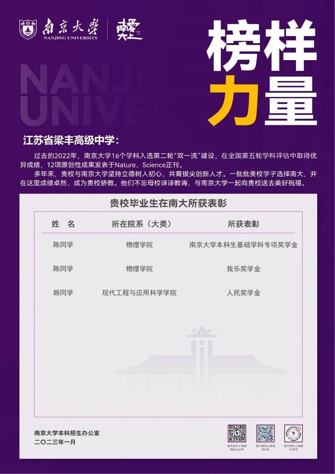 喜报丨南京大学向梁丰高中发来喜报 来源: 发布时间:2023-01-31 23:55:06 浏览次数: 次 【字体:小 大】 喜报近日,南京大学向梁丰高中发来喜报,祝贺梁丰学子在高校就读期间砥砺奋进,荣获各类表彰,希望未来进一步加强合作,携手共育英才!↑长按,识别二维码,加关注 分享到: 【打印正文】
