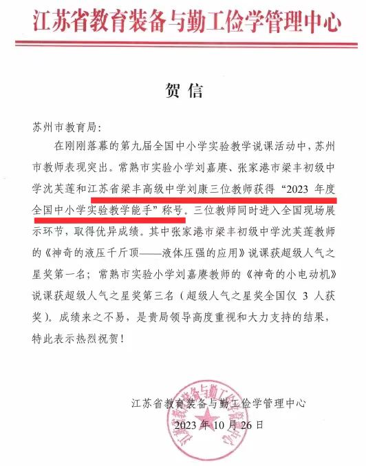近日,全国第九届中小学实验教学说课展示活动在天津落下帷幕。江苏省梁丰高级中学刘康老师凭借作品《光的偏振》获得江苏省一等奖,入围全国展示活动后又获得了“2023年度全国中小学实验教学能手”的称号(全省仅5名选手获得现场说课展示资格)。