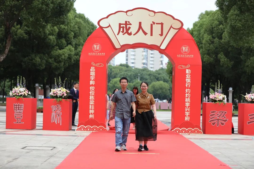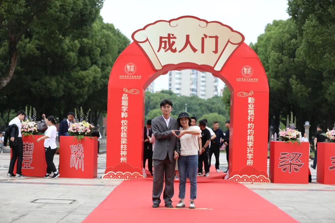 在会议中心广场,鲜艳的花朵簇拥着高耸的“成人门”,长长的红地毯映衬着高三毕业学子们兴奋而成熟的脸庞。他们在家长的陪同下,依次迈入“成人门”。伴随着相机快门欢快跳动的声音,青春与激情、感恩与责任一同被定格在这个难忘的时刻。