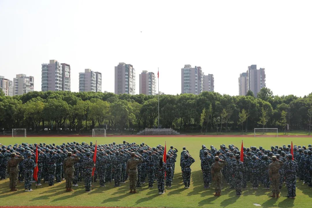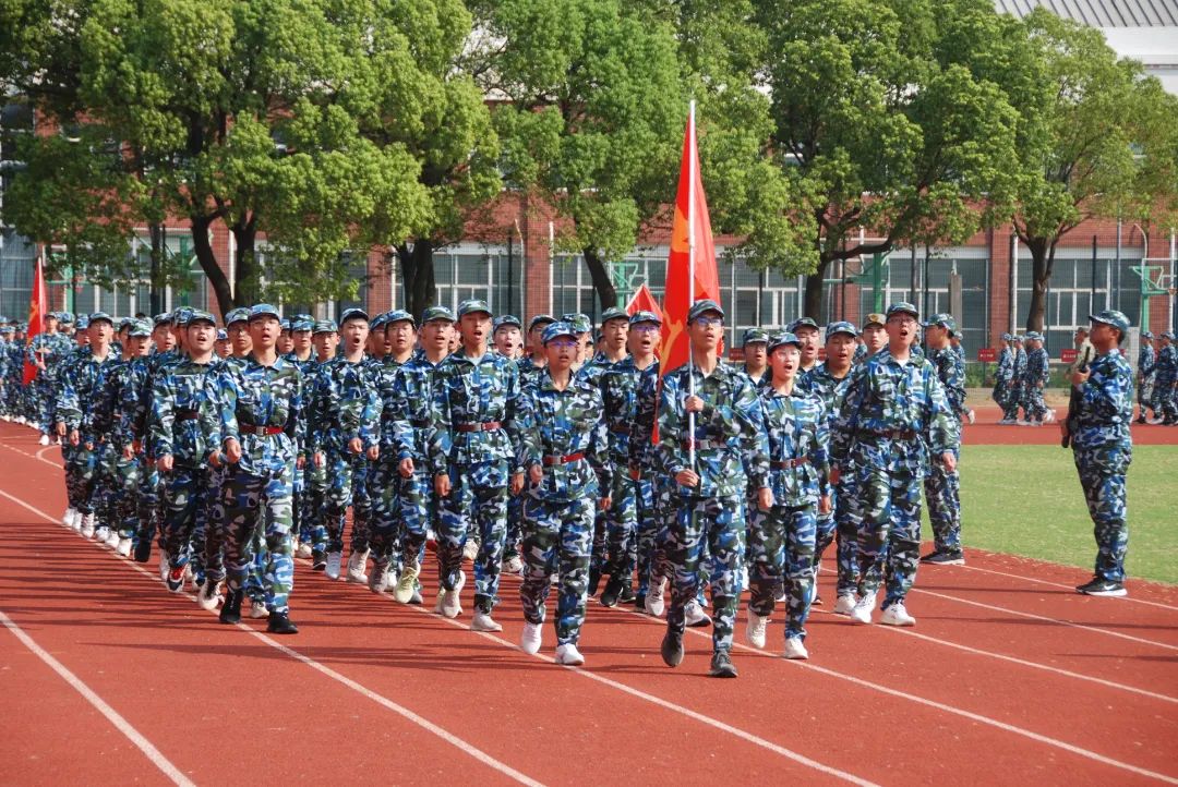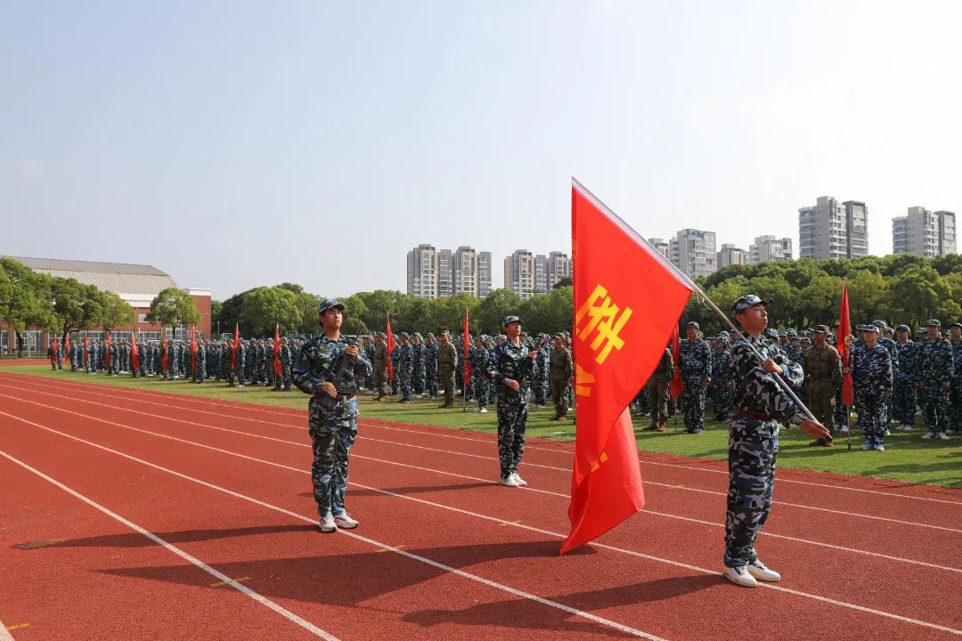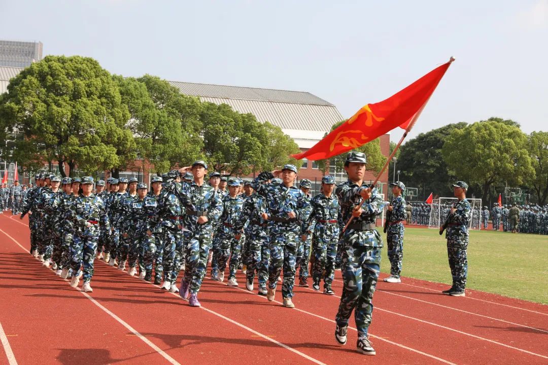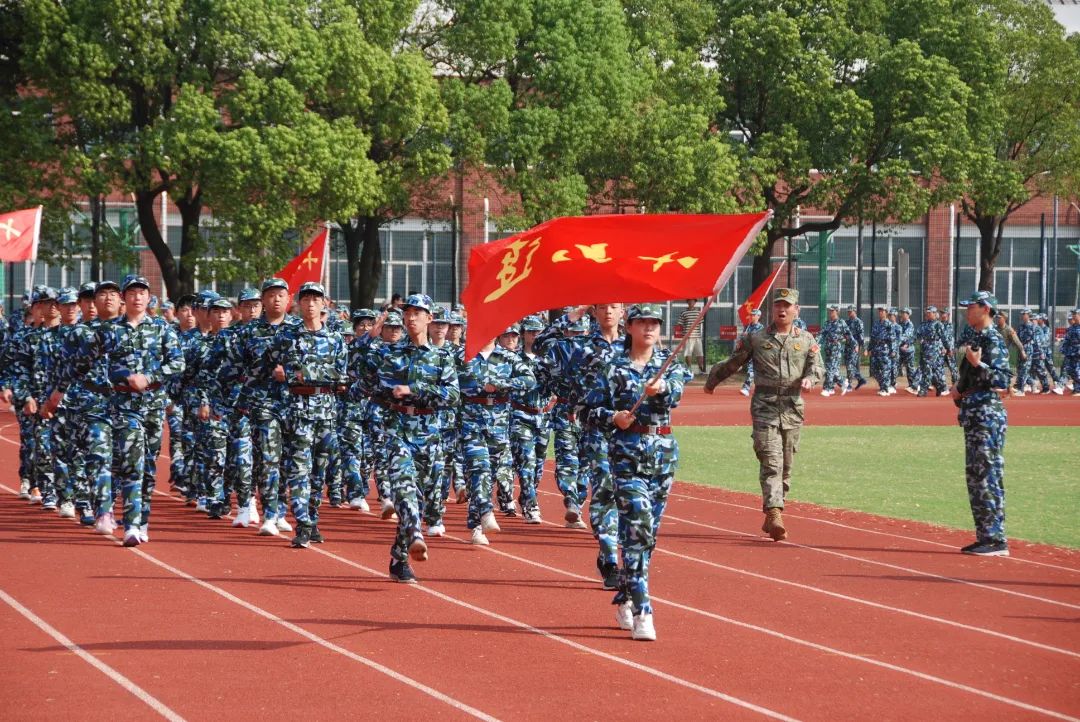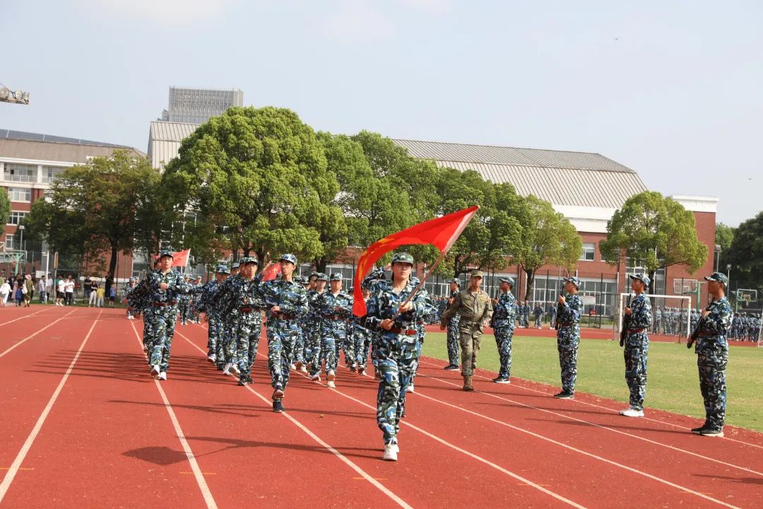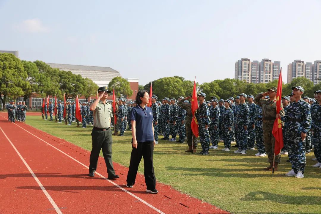 8月25日上午,江苏省梁丰高级中学2023年新生军训检阅式在田径场隆重举行。