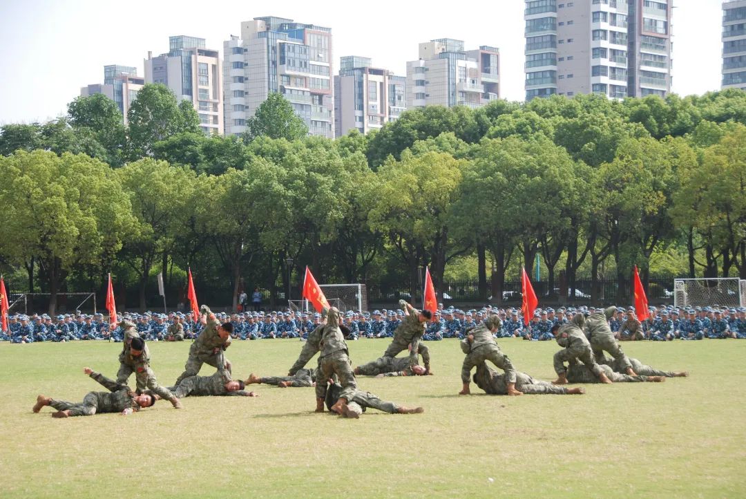 最后,全体军训教官为大家示范表演,他们身姿挺拔、动作整齐,充分展现了当代军人过硬的军事素质与风范。