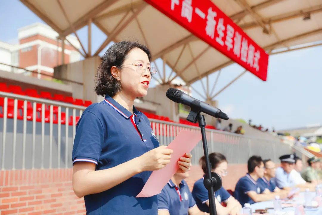 谈雅琴校长首先对到场的各位领导和嘉宾表示热烈的欢迎,对参训部队的领导和教官表示衷心的感谢。谈校长高度赞赏了各连队的训练成果,并希望同学们以军训为起点,强化国防意识,增强爱国热情,充分展现梁丰学子顽强的意志,争当具有家国情怀和创新能力的时代新人。