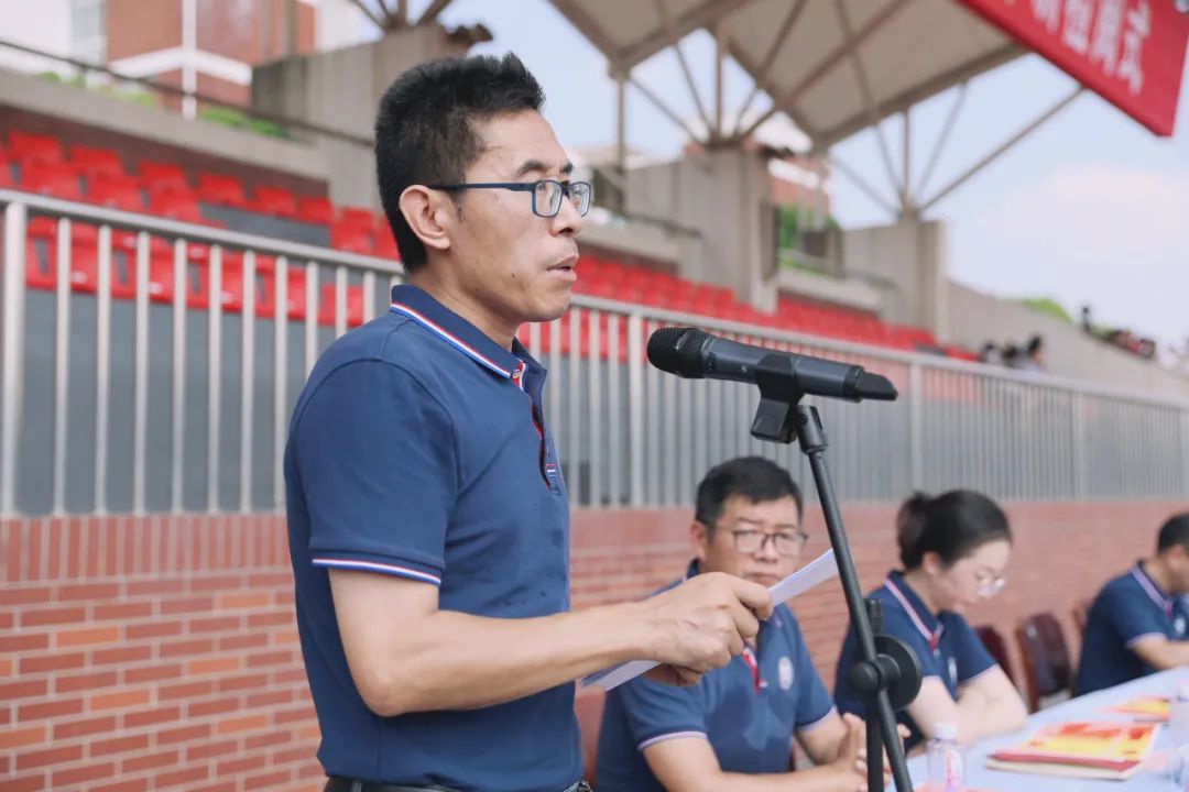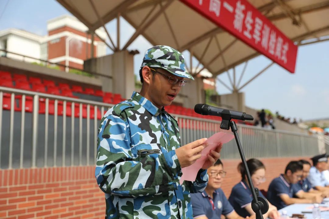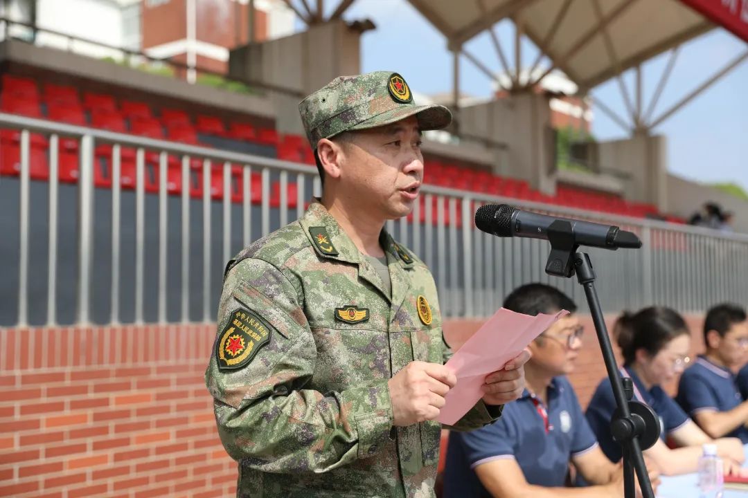 臧胜江副部长首先对梁丰高中2023级新生军训圆满完成表示热烈的祝贺,对老师和教官的辛勤付出表示感谢。在观看了学生们军体拳、应急棍、匕首操等军训表演后,臧部长赞扬了学生们认真努力的训练态度,肯定了卓有实效的训练成果,同时寄语学生,在今后的学习生活中也要发扬军训时的优良作风。