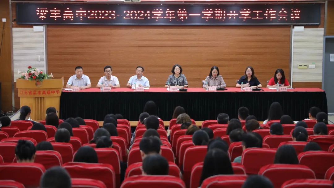 2023年8月28日上午,江苏省梁丰高级中学2023-2024第一学期开学工作会议在报告厅召开。学校党委书记、校长谈雅琴作了新学期工作报告,党委副书记、副校长童霞红主持会议。全体教职工参加了会议。